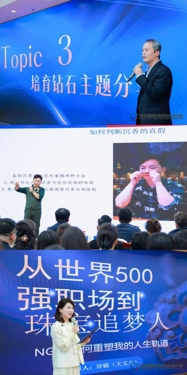 在专题分享环节,沉香领域专家、深圳市许多福珠宝有限公司总经理许庆慧带来《沉香市场的投资密码》主题分享,深入解析沉香市场分析、需求洞察、未来发展趋势。培育钻石专家、中国钻石行业独立分析师及观点传播、自媒体达人朱光宇从培育钻石格局、全球市场数据、培育钻石与天然钻石区别、培育钻石市场未来展望几个维度,就行业绿色变革与科技前沿进行深度解读,为与会者带来跨品类、跨维度的知识更新。优秀学员代表、毓见珠宝创始人徐毓现场分享了她从世界500强企业员工成功转型为珠宝创业者的心路历程,在NGTC完成了从“感性爱好者”到“理性专业人士”的蜕变,让她真正实现了从热爱到专业的跨越,并立志成为东方美学的“摆渡人”,真实动人的故事引发强烈共鸣。